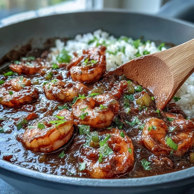 Pin it My neighbor knocked on my door one Thursday evening holding a jar of dark roux and said she had too much. I had no idea what to do with it until she scribbled étouffée on a napkin with three ingredients. That night, my tiny kitchen smelled like something I didn't know I'd been missing. The shrimp curled pink in the pot, the rice soaked up every bit of that rich, smoky gravy, and I understood why people guard their roux recipes like heirlooms.
