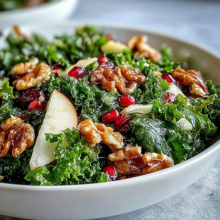 Pin it There's something about the moment you break open a pomegranate and those jewel-like seeds tumble into your palm that makes you feel like you're doing something right in the kitchen. I discovered this bowl on a Tuesday afternoon when my fridge looked disappointingly bare except for a bunch of kale that was starting to feel urgent and a pomegranate I'd been saving for the right moment. That right moment turned out to be lunch, and it became the kind of dish that made me realize salads didn't have to feel like punishment.