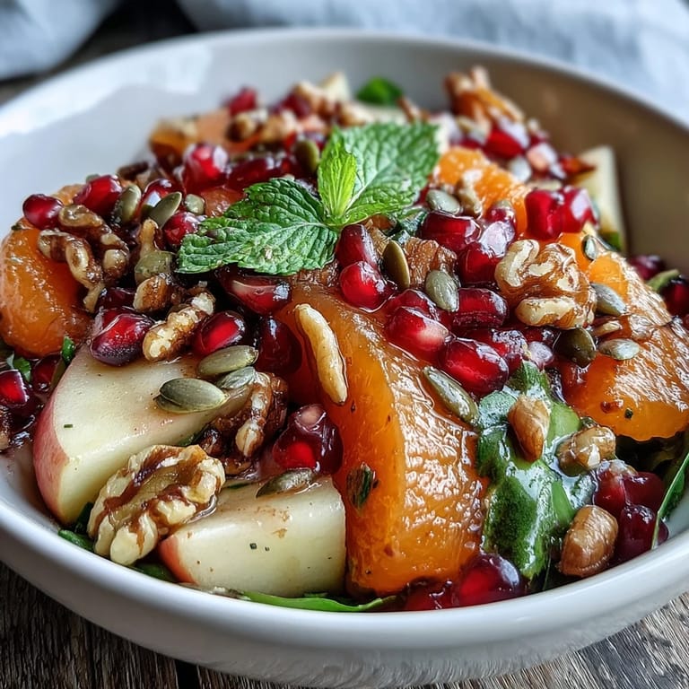 Pin it My neighbor knocked on my door one December afternoon with a pomegranate in hand, insisting I needed to try making a salad that actually tasted like winter felt—bright, crisp, and somehow warming all at once. I was skeptical about mixing fruit with walnuts until the first bite hit, and suddenly I understood why she'd made the trip. That salad changed how I thought about winter eating entirely, turning those cold months from something to endure into something to celebrate.
