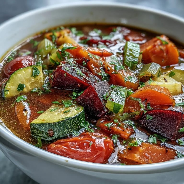 Pin it Last winter, I was searching for something warm that didn't feel heavy, and I found myself chopping vegetables almost by color, fascinated by how the beets turned my cutting board a deep crimson. A friend mentioned she'd been making rainbow soups to use up her garden's last vegetables, and something clicked. This soup became my answer to those days when I wanted nourishment without guilt, vibrancy without fuss.