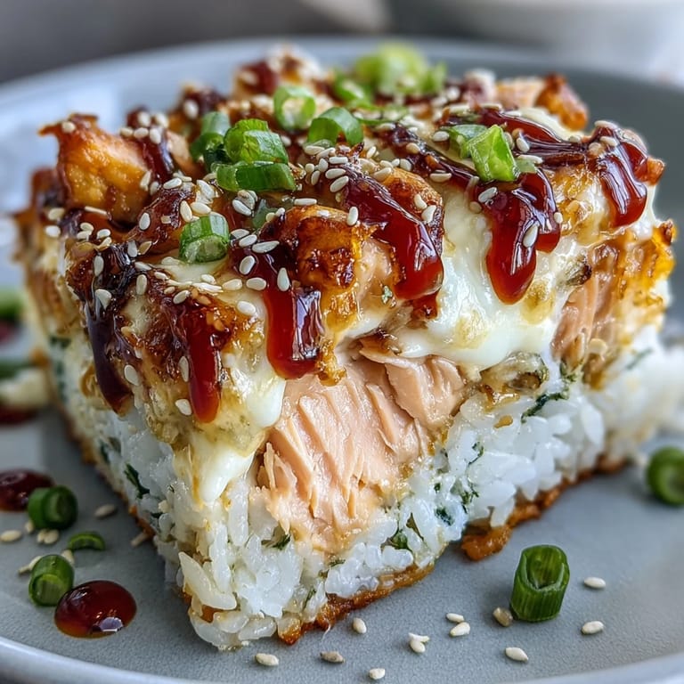 Pin it The smell of sesame oil hitting warm rice always takes me straight back to my tiny apartment kitchen, where I first tried making this after scrolling too long through food videos at midnight. I had leftover salmon from dinner, a craving I couldn't shake, and zero patience for rolling individual sushi pieces. What came out of the oven that night was messy, bubbly, and so good I texted photos to three different people before I even sat down to eat. This dish taught me that sometimes the best recipes happen when you stop trying to be perfect and just layer flavors you love into one beautiful, shareable pan.